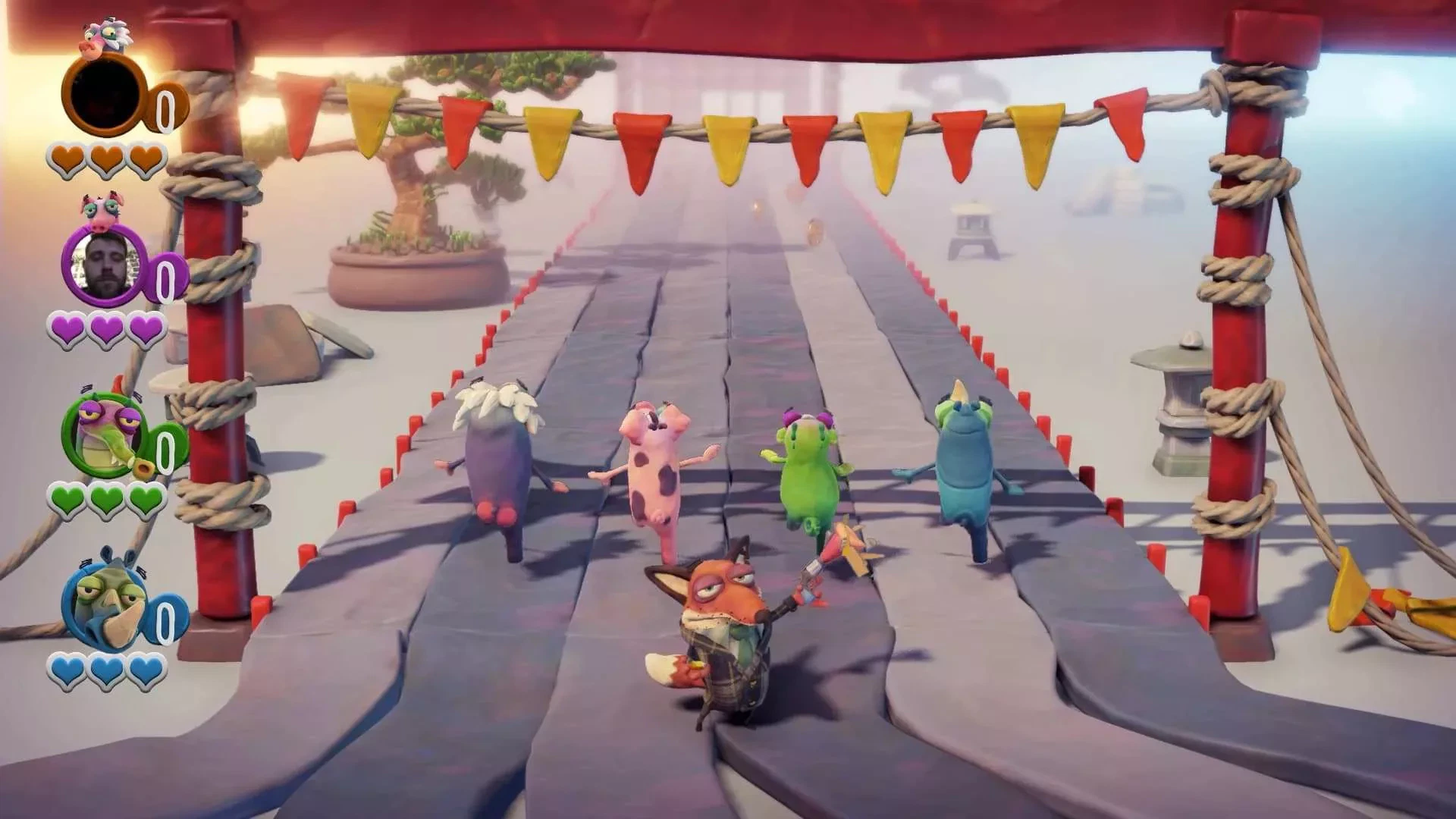 Même principe que pour les autres jeux Playlink, on joue avec son téléphone connecté à la Playstation 4. Vous pouvez jouer tout seul, monsieur renard ajoutera trois autres concurrents. Le plus rigolo étant d’être quatre joueurs dès le départ. À vous les courses de voitures où chacun assortira un adversaire d’un handicap, les courses à pieds où la victoire dépendra de votre rapidité à bouger et mettre des bâtons dans les pattes de vos concurrents, également des jeux de glissade, du parachutisme légèrement dangereux (celui qui gagne c’est celui qui ouvre en dernier son parachute sans se manger le sol), etc, etc.